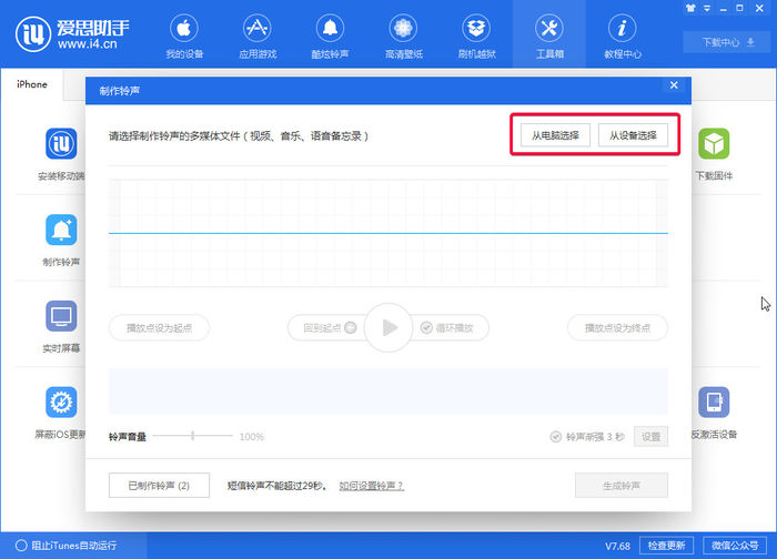 爱思助手怎么制作铃声?
