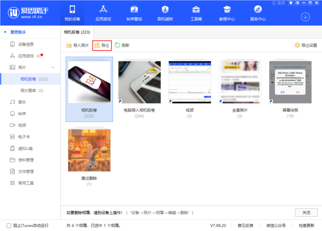 - 使用批量删除功能:选择不需要的照片后,可以使用“删除”按钮来批量移除这些照片。在进行删除操作前,爱思助手通常会请求确认,以防意外删除重要照片。