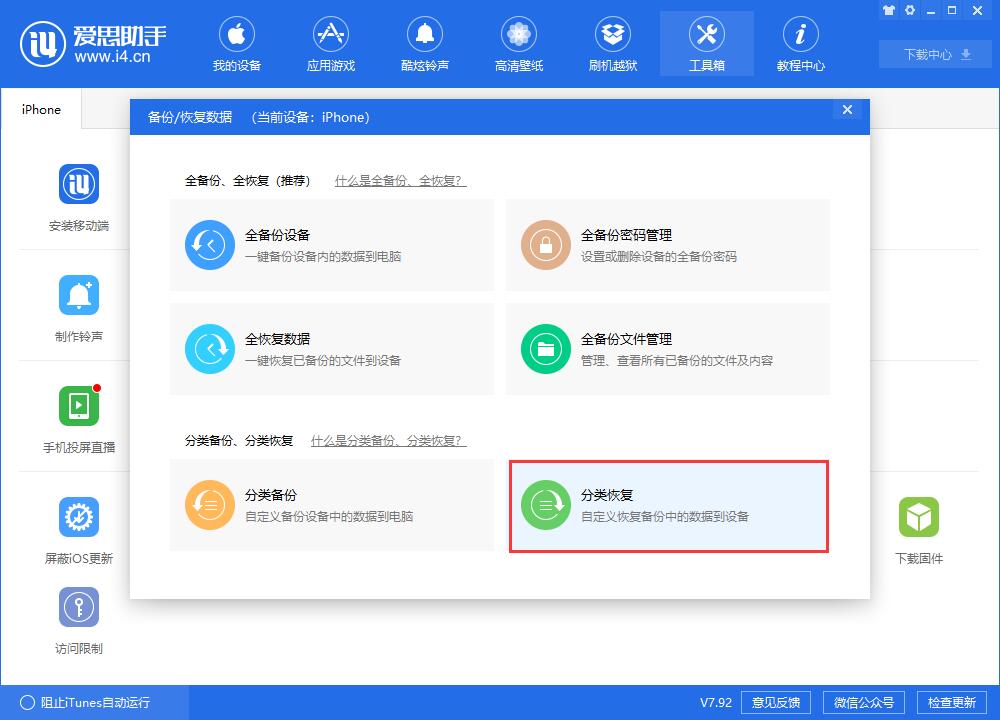- 备份和恢复的灵活性:爱思助手支持选择性备份和恢复,允许用户选择特定的应用和数据进行备份或恢复,而iTunes则通常进行全设备备份和恢复。这提供了更大的灵活性,尤其是在只需要恢复部分数据的情况下。