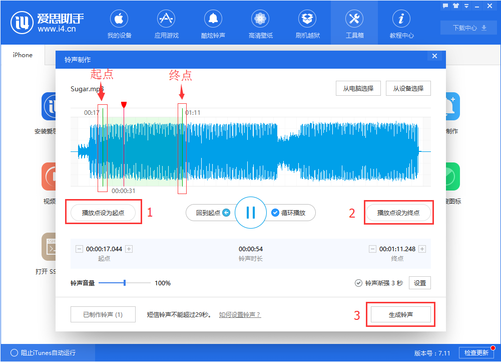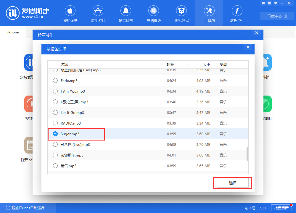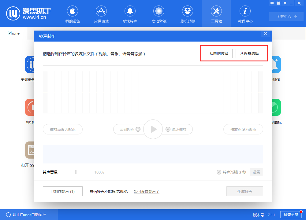 使用爱思助手开始制作铃声